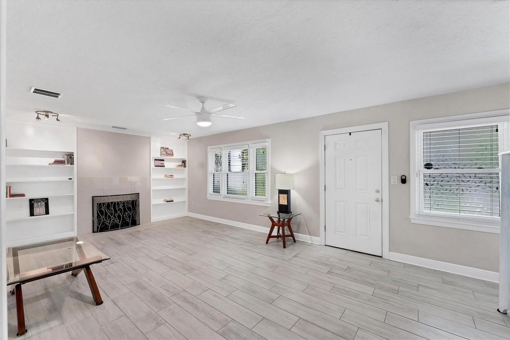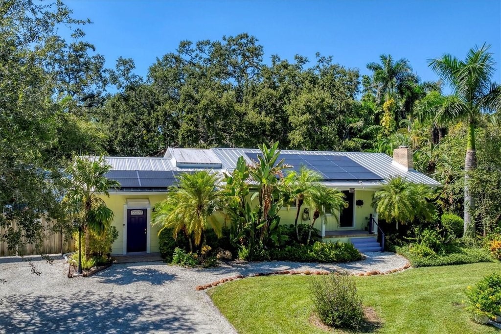 Charming 1950s home updated with todays modern conveniences! This 4-bedroom, 2-bath home features hurricane impact-rated windows, metal roof with solar panels (owned), new electric panel, whole-house water filtration system, new AC, plank tile flooring throughout and so much more! The fourth bedroom includes a private entryperfect for guests, in-laws, or a home office. The completely updated chef's kitchen offers abundant storage, complemented by a separate dining room with built-in buffet and cabinetry. The living room exudes character with custom bookcases and a propane gas fireplace. The backyard is a true Oasis, whether you're entertaining on the huge deck, enjoying a quiet moment on the screened lanai or doing laps (or having a bubbly soak) in the oversized swim spa you'll be overlooking the quiet grandeur of the 350-year-old Grand Oak that reigns majestically over the back yard. Situated on a quiet centrally located street - just minutes to the downtown Riverwalk and all the shopping and restaurants that Bradenton offers - or a quick ride to the world-famous sugar-sand beaches of Anna Maria Island.